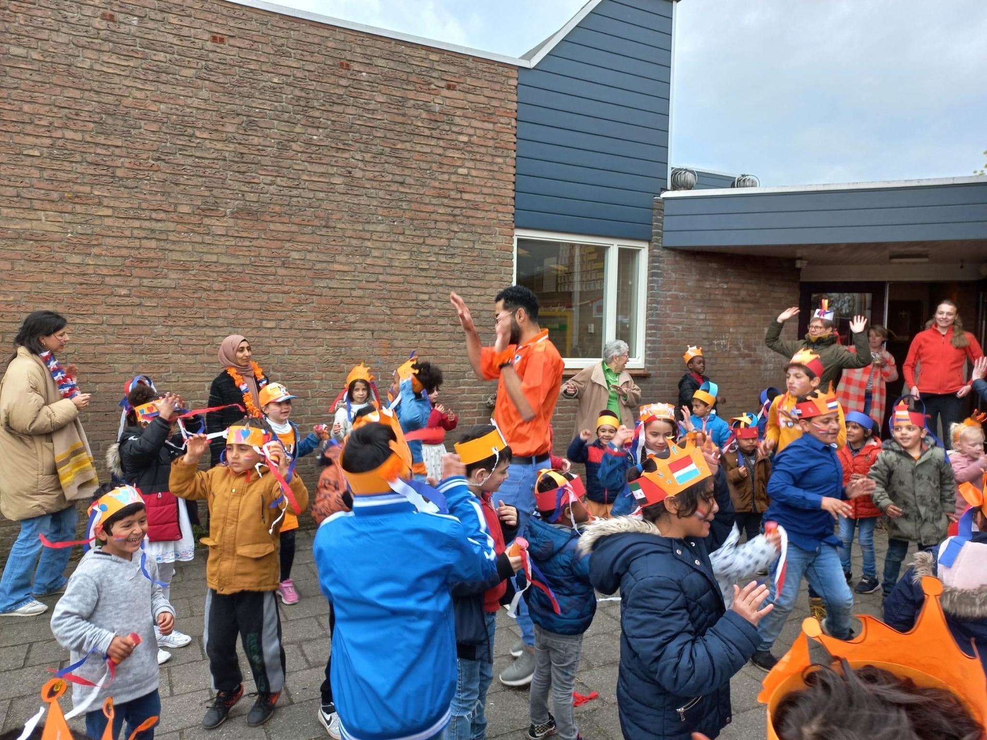 Op donderdag hebben we met de hele school gedanst op het lied van Kinderen voor Kinderen. Dit jaar was het lied 'Zij aan zij' en het ging over samenwerken en elkaar helpen. Dit paste perfect bij het thema van de Koningsspelen. Het was een geweldig gezicht om alle leerlingen en leerkrachten samen te zien dansen! Aan het einde van de dag was er een speurtocht waarbij de leerlingen op zoek gingen naar typisch Nederlandse dingen, zoals molens, kaas, tulpen en klompen. Dit was niet alleen heel leerzaam, maar ook ontzettend leuk om te doen!
