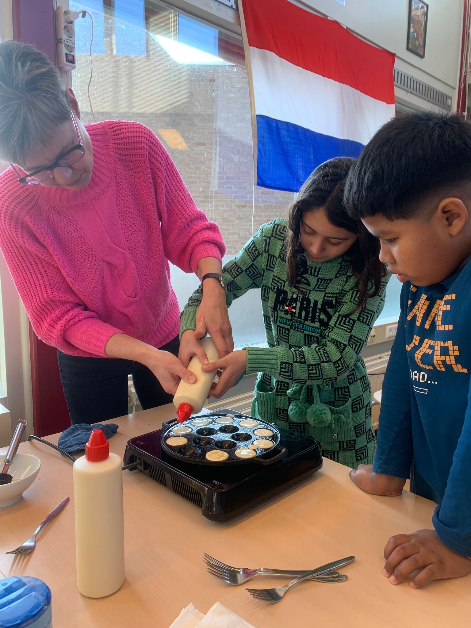 Wat een geweldig begin van het schooljaar! Deze weken stond het thema Nederland centraal en we hebben ontzettend veel geleerd over de Nederlandse cultuur, gebruiken en tradities. Zo startten we het schooljaar met het oliebollen om samen het nieuwe jaar te vieren. We leerden nieuwe Nederlandse woorden, maakten zelf molens, bakten poffertjes en sloten het thema af met een echte Nederlandse klassieker: erwtensoep! En erwtensoep maken was nog niet zo makkelijk. In alle groepen werden groenten gesneden en daarna kookten we de soep buiten in een grote pan op het vuur. Alle leerlingen mochten helpen met koken en natuurlijk ook een lekker kop soep proeven.