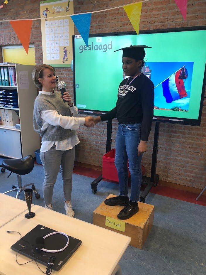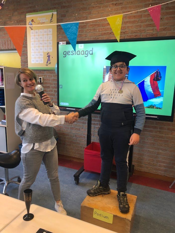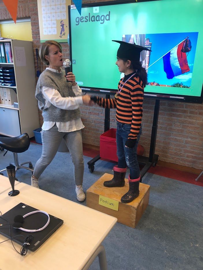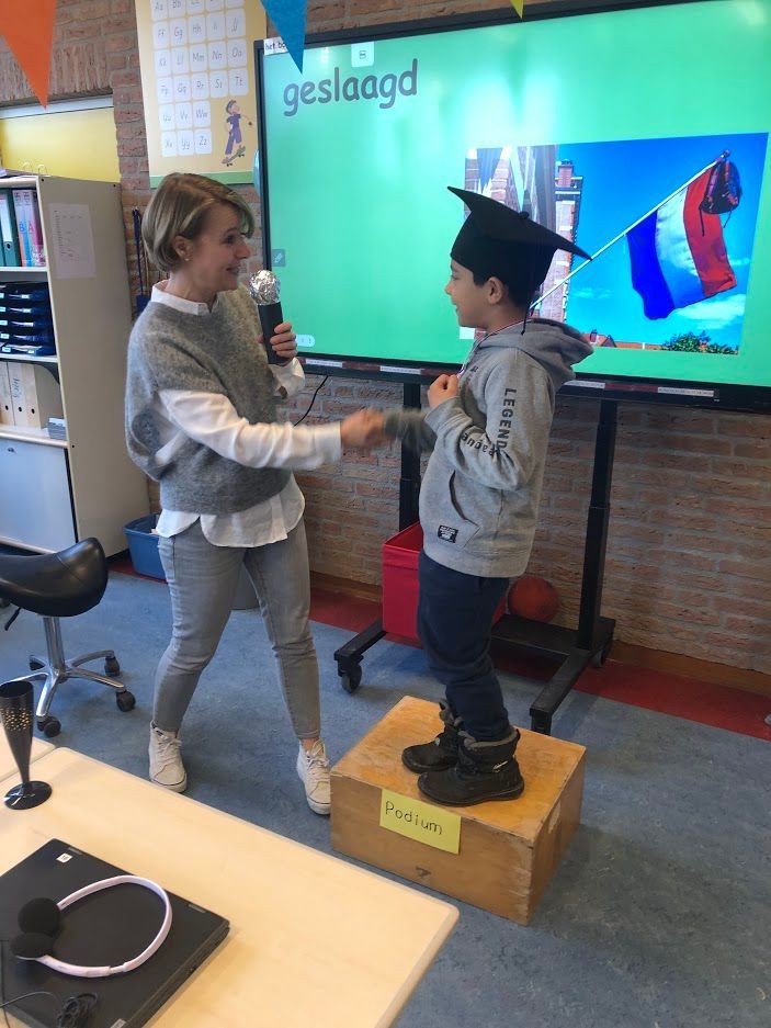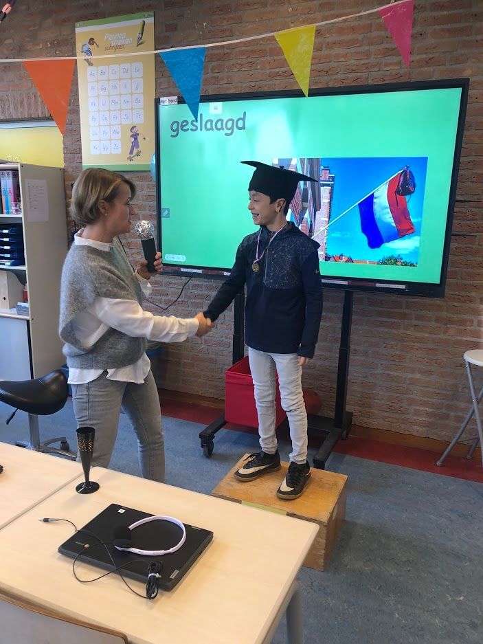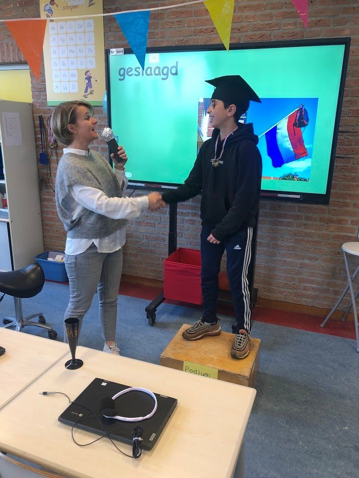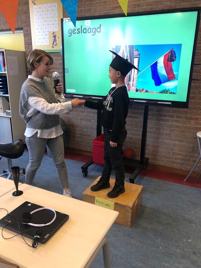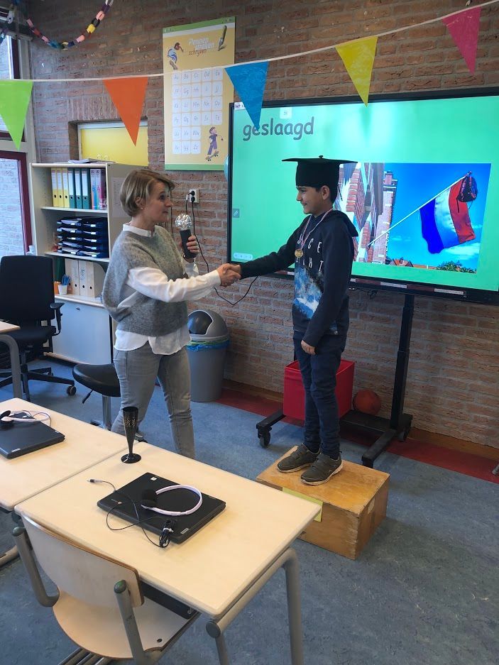 The first group of children has finished the last lesson and tests for Dutch vocabulary with success! Of course we have celebrated this milestone for them and us with a little party with a diploma, a medal, a drink and something tasty. Now we will proceed with reading books, having conversations and presentations (from the children!) in class. Congrats from their proud teachers!