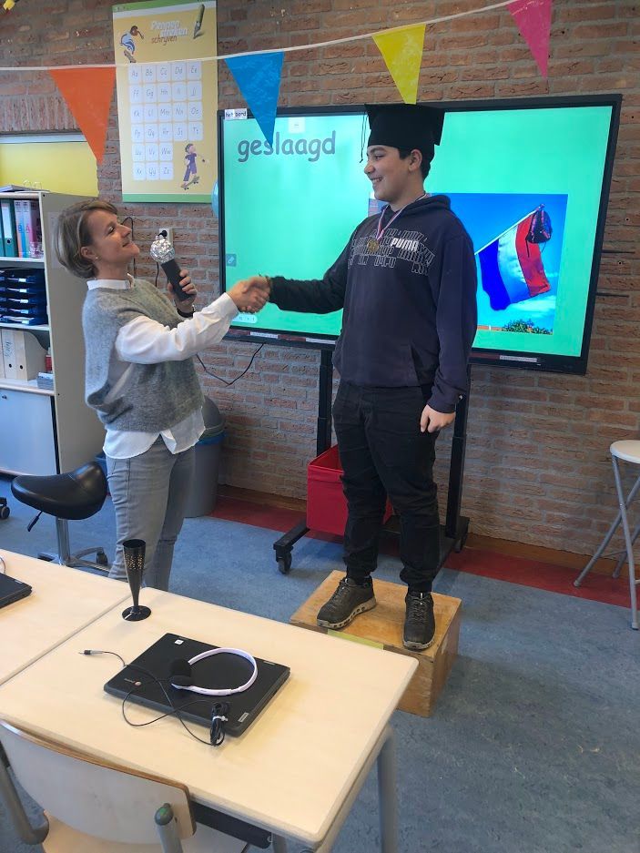 De eerste groep kinderen heeft de laatste les en toets van onze methode voor Nederlandse woordenschat succesvol afgerond. Natuurlijk hebben we een feestje gevierd met een diploma, medaille, glaasje en iets lekkers. En nu gaan we met deze groep lekker aan de slag met voorlezen, gesprekken voeren en presenteren in de klas. Gefeliciteerd namens hun trotse juffen!