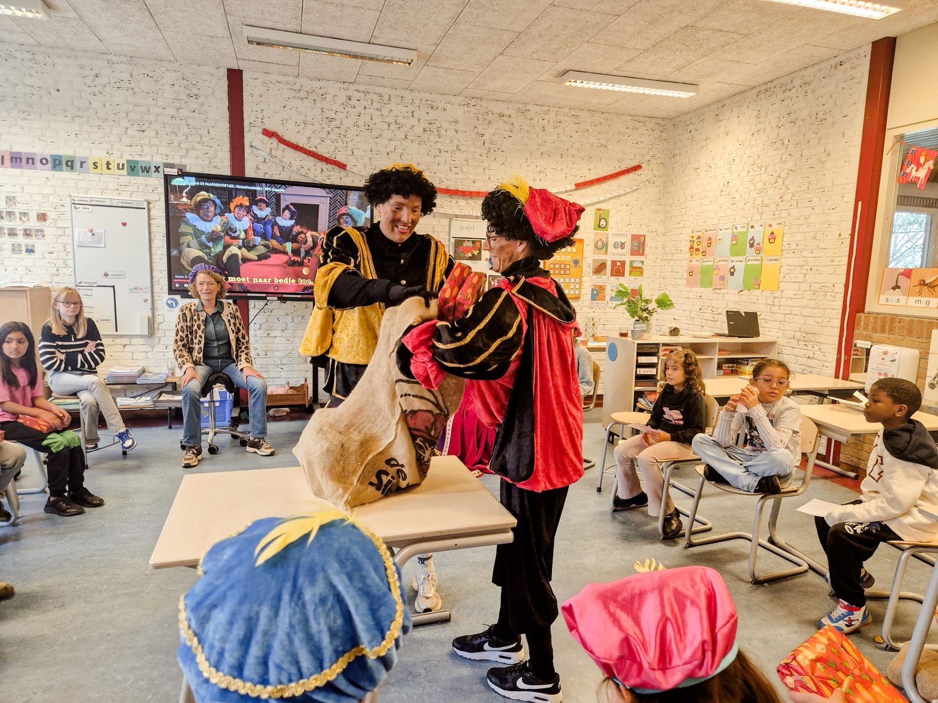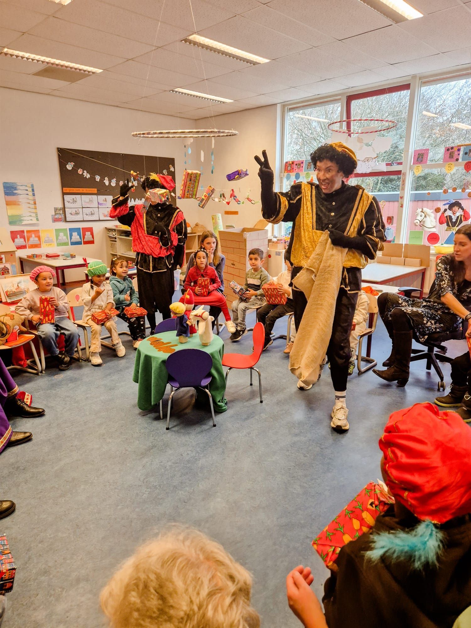 Op woensdag 3 december was het weer feest op school. Sinterklaas kwam samen met zijn Pieten op bezoek! ’s Ochtends kwam Sinterklaas aan op het schoolplein. Alle kinderen stonden al klaar en waren blij om hem te zien. We zongen samen Sinterklaasliedjes en dansten op de muziek. Wat een gezellig begin van de dag! Na de aankomst ging Sinterklaas langs alle groepen. In elke klas deelden de Pieten kruidnoten uit en lieten ze hun kunsten zien. Sinterklaas had zijn grote boek bij zich en wist over alle leerlingen iets te vertellen. Dat zorgde voor veel lachende gezichten. Natuurlijk kregen alle leerlingen ook een mooi cadeau.